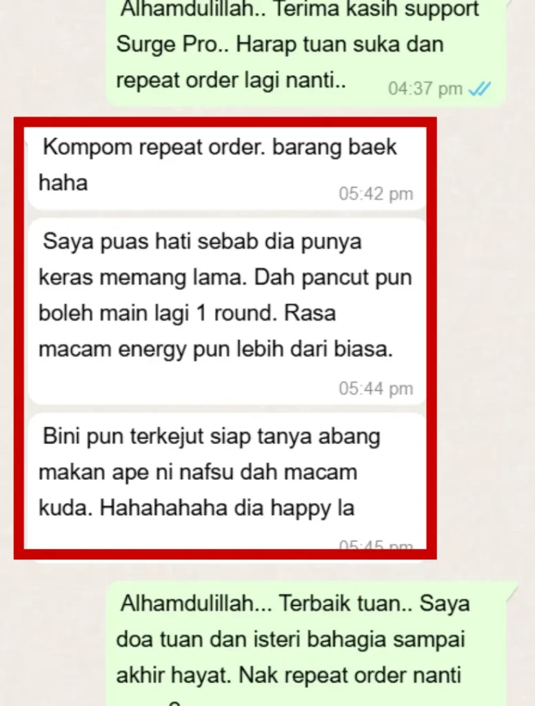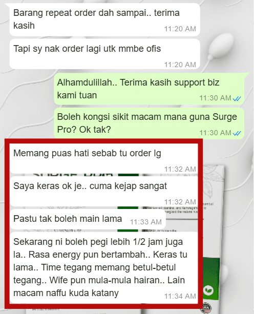 Ramai pengguna tegar repeat order Surge Pro kerana ia telah terbukti berkesan dan kesannya sangat pantas.