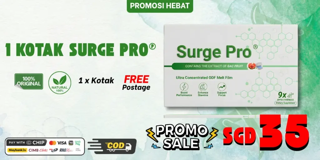 Surge Pro® adalah produk sokongan kesihatan. Jika anda mempunyai kondisi perubatan tertentu atau sedang mengambil ubat doktor, disarankan untuk mendapatkan nasihat profesional kesihatan sebelum penggunaan.