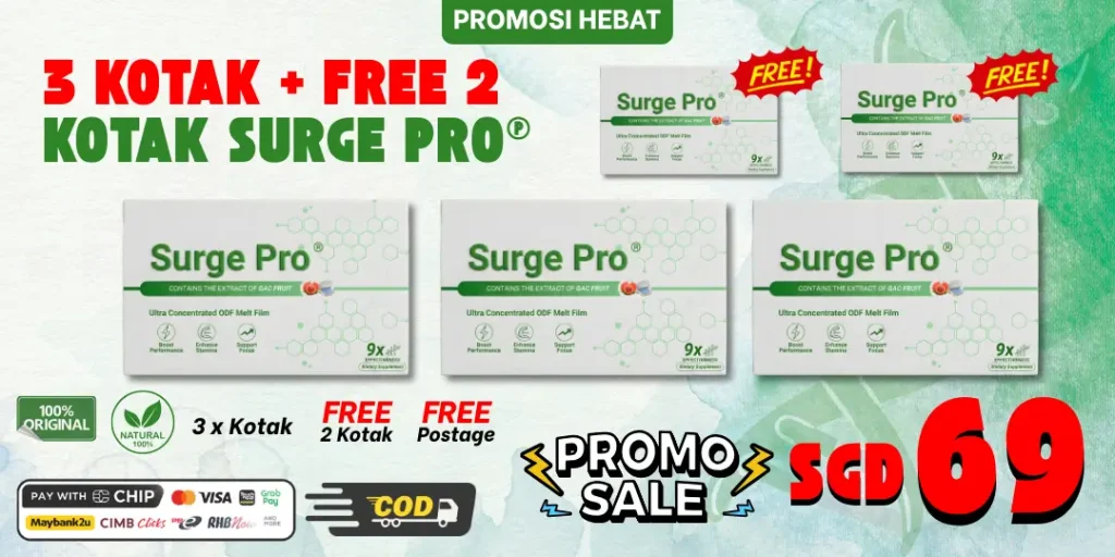 Surge Pro® adalah produk sokongan kesihatan. Jika anda mempunyai kondisi perubatan tertentu atau sedang mengambil ubat doktor, disarankan untuk mendapatkan nasihat profesional kesihatan sebelum penggunaan.